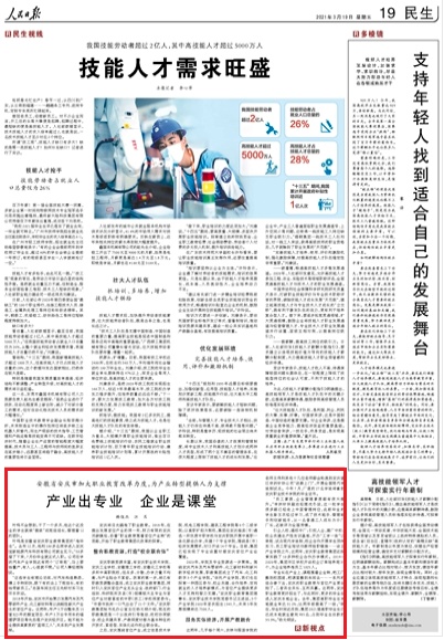专业长在产业上,课程围着企业转,把工厂搬到校园里,把课堂搬到车间去……一系列的组合拳下去,安庆的职业教育与首位产业更合拍了,二者共生共长、互利共赢。这两年,安庆职业教育更好招生了,与此同时,更多的毕业生进入安庆本地企业。去年,集团高职毕业生本地就业率达31.2%,比两年前提高了一倍。“现在,毕业时间还没到,集团2021届高职毕业生已达成本地就业意向985名,占到毕业生总数的35.3%。”杨元纲说。