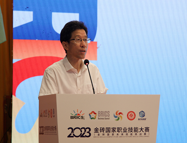 刘振英以视频方式致开幕辞。他向各位领导、各位嘉宾、各合作伙伴以及各参赛队的支持、参与表示衷心的感谢。他指出,开展金砖国家职业技能大赛是落实金砖国家宣言中关于技能发展工作的相关精神和贯彻执行习近平主席在金砖国家领导人第十三次会晤中提出关于举办金砖国家职业技能大赛为我国职业院校和企业搭建交流合作的倡议,同时也是金砖技能(中方)组搭建高水准、鲜明职业教育特色赛事平台,推动金砖国家在教育领域的深度合作与交流的主要任务之一。