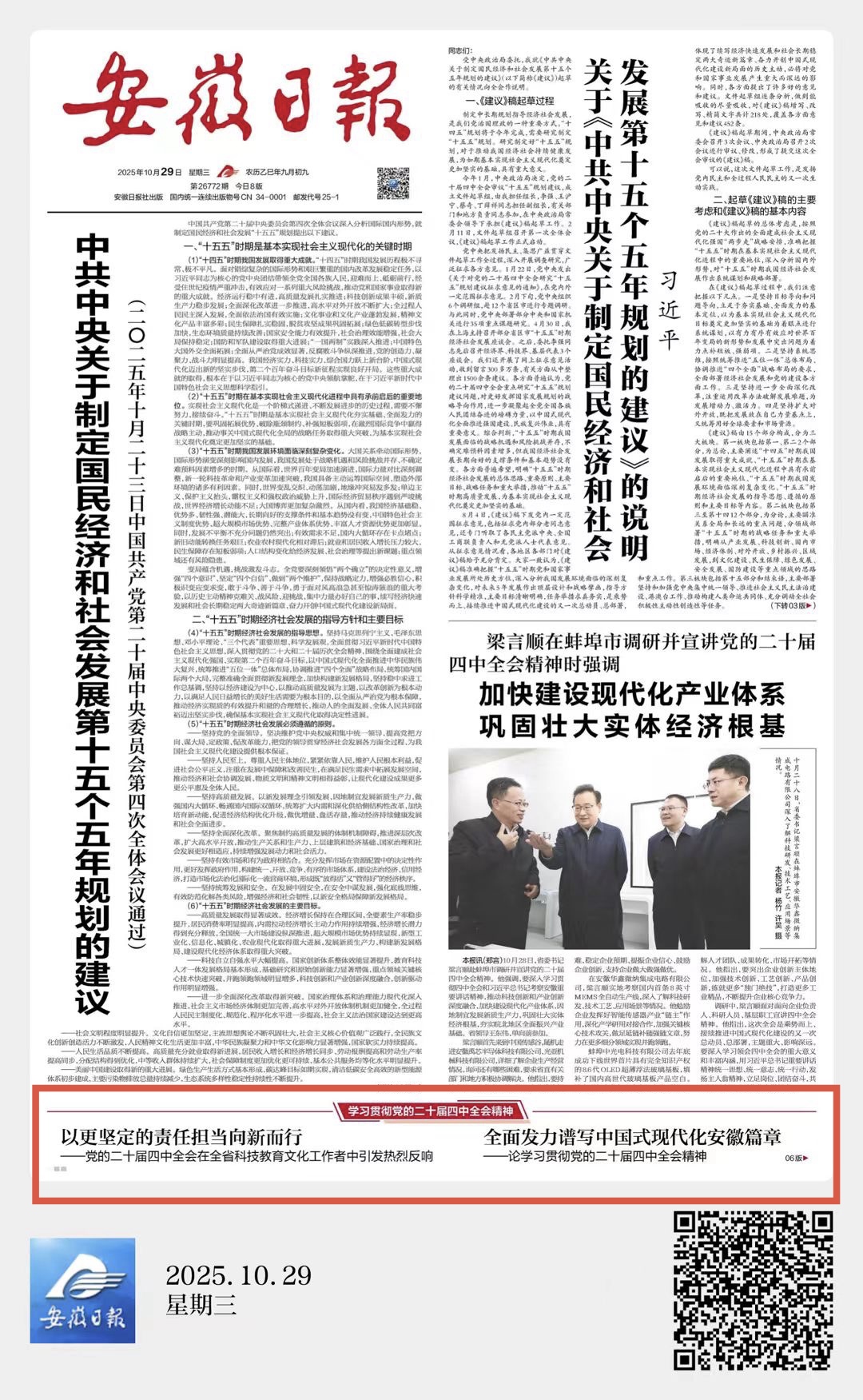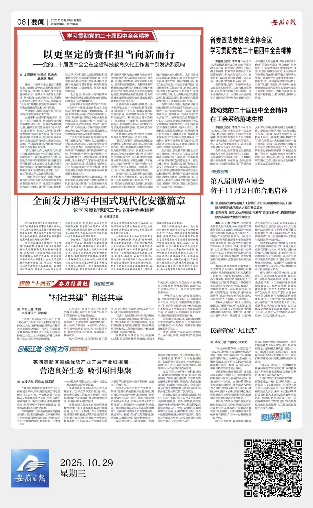 安徽日报:以更坚定的责任担当向新而行——党的二十届四中全会在全省科技教育文化工作者中引发热烈反响