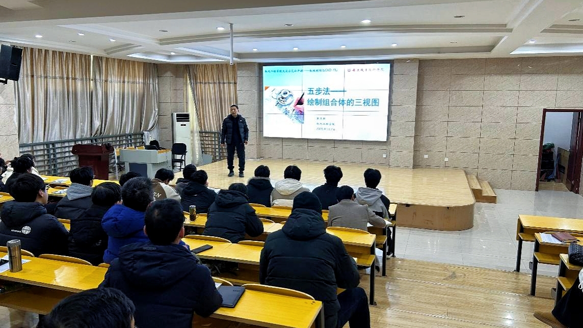 赵夫超老师以其深厚的专业功底和丰富的教学经验,依托《机械制图与CAD》课程,带来了主题为“五步法绘制组合体三视图”的精彩示范课。面对学生绘图过程中的常见难题,赵老师匠心独运,提出了“摆好位置、选好方向、布好图位、逐体绘图、检查加粗”的五步绘图法,这一方法逻辑清晰,操作性强,有效提升了学生的绘图规范性和准确性。