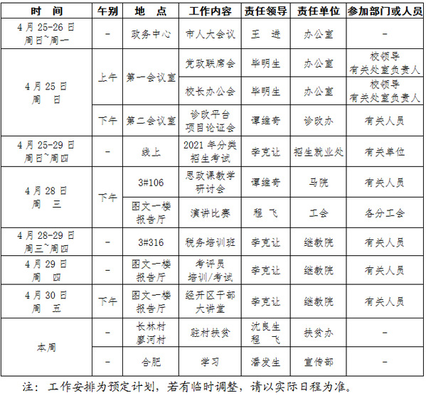 2020-2021学年第二学期第9周(4.26-5.2)工作安排