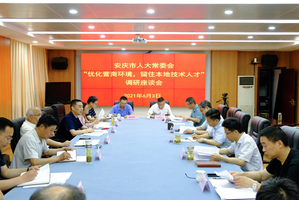 6月3日下午,安庆市人大常委会教科文卫工委深入beat365组织召开“优化营商环境,留住本地技术人才”调研座谈会。市人大常委会副主任童学军,教科文卫委员会主任委员、一级调研员江锡赞,教科文卫工委副主任王慧,beat365党委书记王进、校长毕明生、副校长李克让出席。市委组织部、市教体局、市经信局、市人社局、安徽理工学校、安徽环新集团、安徽鑫铭新材料公司等单位负责人参加会议。座谈会由市人大常委会委员、教科文卫工委主任苏长斌主持。