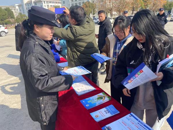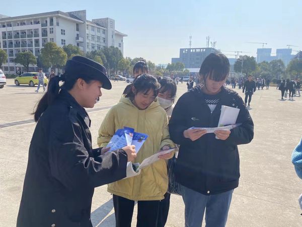 12月3日中午,校保卫处联合老峰镇人民政府安监办、老峰派出所到校园开展食品安全、反诈骗、反邪教、反恐防范、禁毒等知识教育活动。