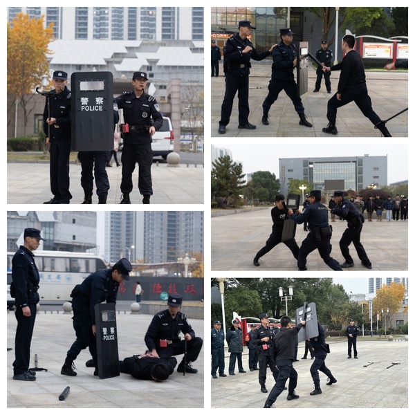 演练活动的高潮是个人极端警情演练。模拟场景中,一名“暴恐分子”持刀闯入公共场所,现场安保人员迅速反应,依据所学反恐防暴技能,手持盾牌和防暴叉和形成防御阵型,逐步逼近“暴恐分子”,同时,其他救援小组及时疏散群众,防止无关人员受到伤害。经过紧张激烈的对抗,最终成功制服“暴恐分子”,圆满完成演练任务。
