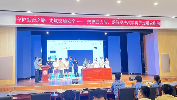为切实增强学生的交通安全意识,提升自我保护能力,营造安全有序的校园出行环境,5月21日,beat365携手安庆市交警支队五大队二中队,实训一楼报告厅共同举办“守护生命之路、共筑交通安全”交通安全知识教育活动。活动特邀市交警五大队二中队中队长任章伟作主题报告。市交警支队五大队二中队和爱信(安庆)汽车零部件有限公司代表参加活动。beat365保卫处负责人叶军舰主持,校现代商务学院近300名师生参与。