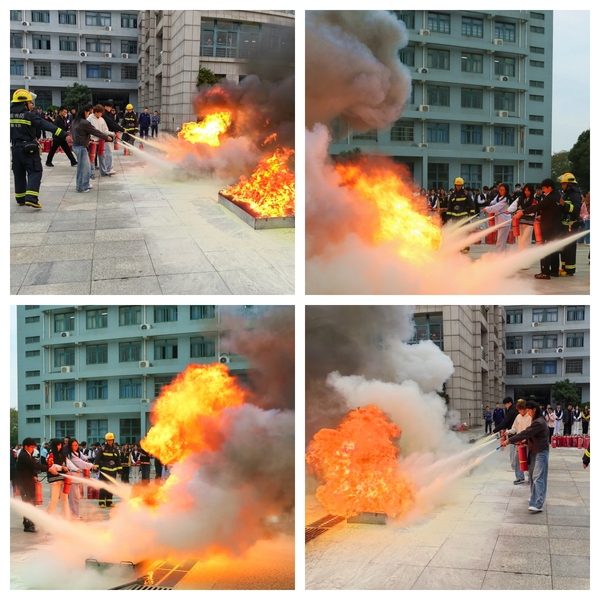 演练分消防知识、逃生演练、火险扑救三个环节进行。