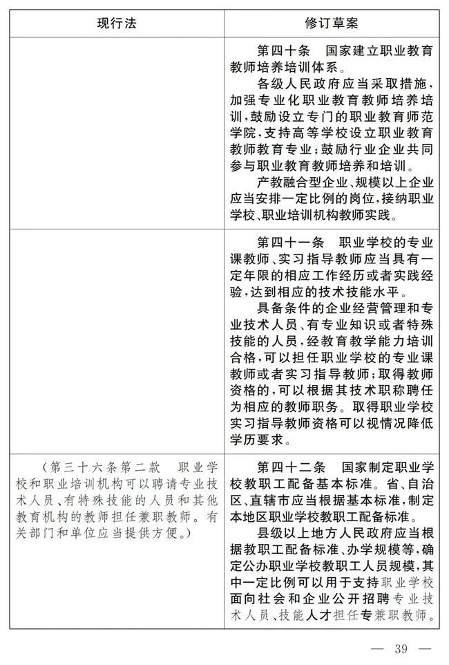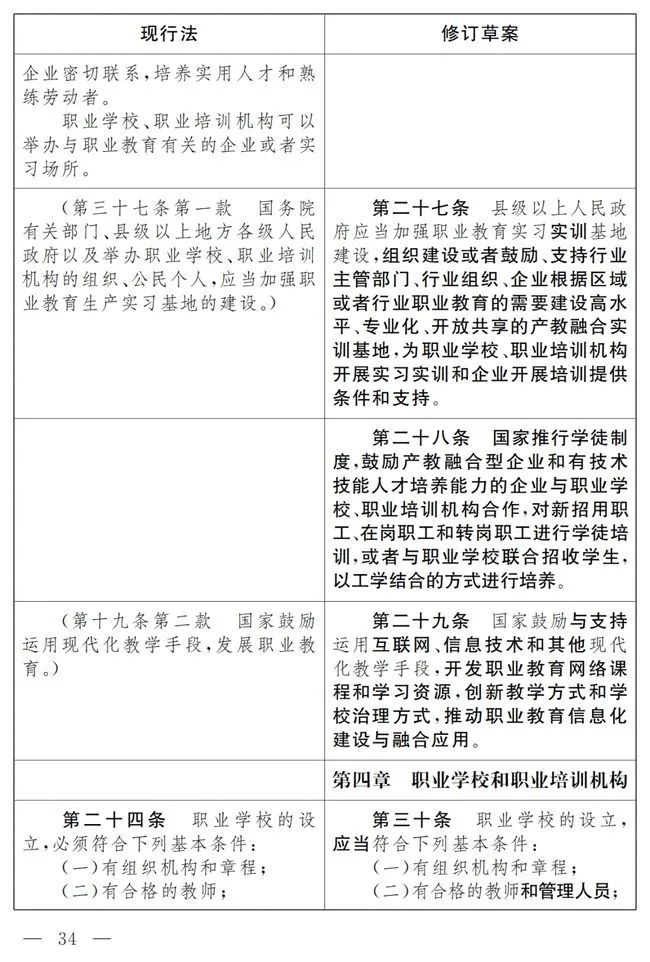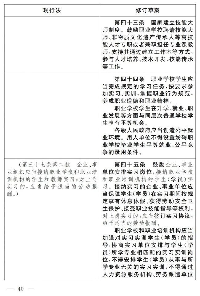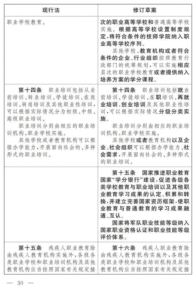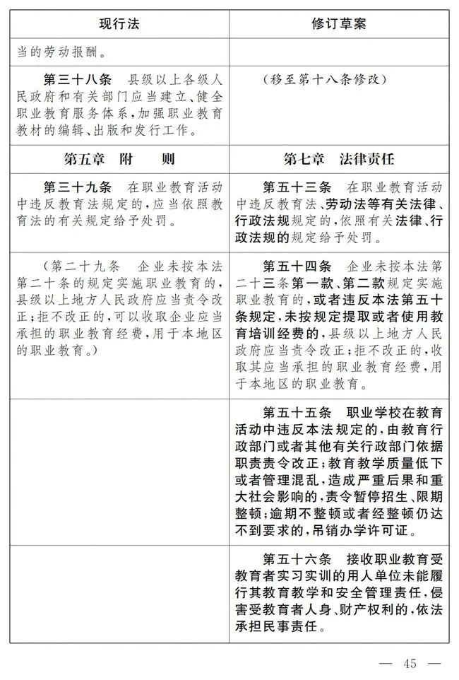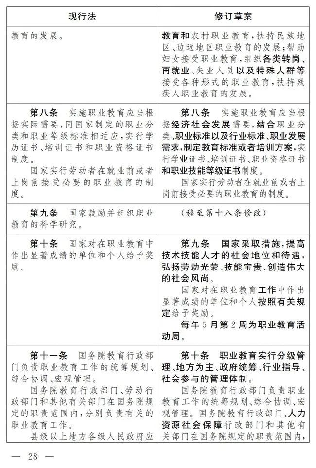 《中华人民共和国职业教育法》修改前后对照表