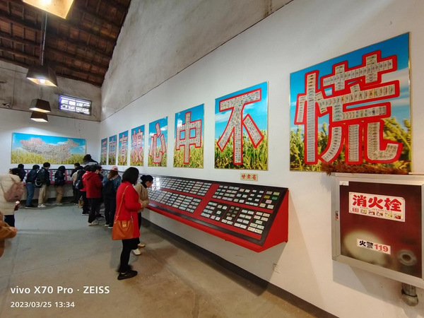 当天下午参观了“天下粮仓1949”。天下粮仓由省级文物保护单位宁氏宗祠和改造后的五座老粮仓组成,分粮票博物馆、农耕文化体验馆、茶艺文化体验馆、农副加工产品展示馆、公社大食堂等,重点突出以粮食文化为核心的展示和体验。还有不少农耕展品是现代农业农村时代未从见过的,大家兴奋不已,一下子把记忆追溯到儿童时代。通过参观,感受到农民农耕的艰辛和时代的进步,更加领会到“谁知盘中餐,粒粒皆辛苦”的深刻含义。(文、图:章杰义 审稿:彭金德)