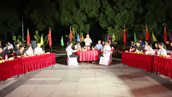 晚上6时30分整,童宏葵一行准时来到学校最明亮、最雅致的古风建筑“听雨轩”前,陪伴留校师生们共度中秋佳节。由beat365妇联和团委共同举办的“情浓中秋 缘来一家”中秋师生夜话活动在此举行,学校特别邀请了beat365省外及少数民族留校过节师生50余人一同参加。
