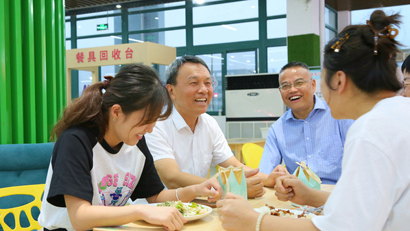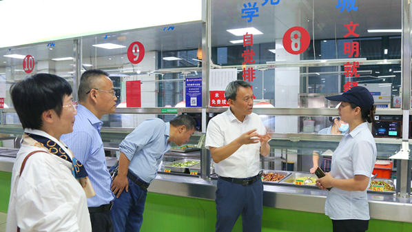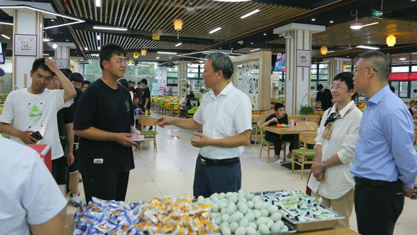 童宏葵一行还仔细查看了食堂的菜品菜色,详细了解了食材进货渠道、食品安全和食物储备情况,认真叮嘱相关工作人员,双节期间更要保障好师生的用餐安全,不断丰富菜品的花色品种,提升伙食质量,满足师生多样的就餐需求。同时,食堂工作人员还要提升服务意识,提高服务能力,倾力为师生们打造干净卫生、环境优美、气氛温馨的用餐环境,让每一位留校师生虽然不能团圆,但也能感受到家的味道和家的氛围,让每一位留校师生都能吃好、喝好快乐过节。