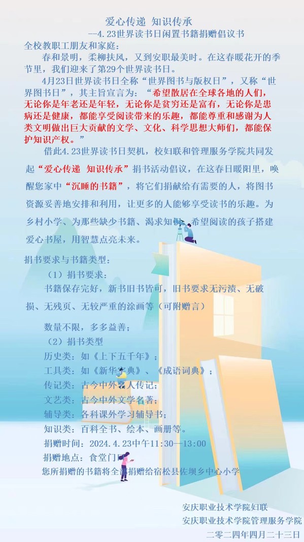 爱心传递 知识传承——4.23世界读书日闲置书籍捐赠倡议书
