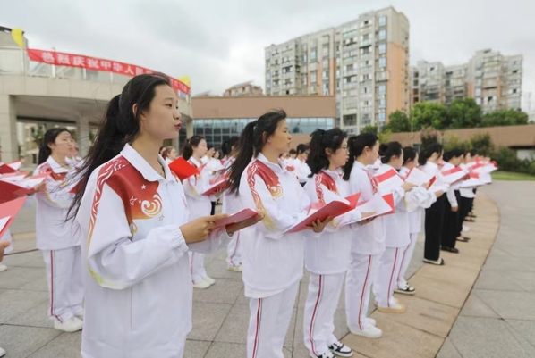 在领诵人员的引领下,师生们饱含深情歌颂祖国,用真挚的情感和激昂的声音,抒发对祖国深深的热爱与崇敬之情。