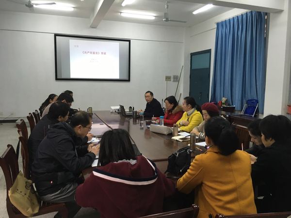 11月16日,党总支书记朱松节,在重温学院“聚焦高质量、争当排头兵”方案的基础上,给系部全体党员上党课,从写作背景、光辉思想和伟大实践三个层面,详细解读《共产党宣言》,增强了全体党员对《共产党宣言》的全面理解,增强了党性修养。