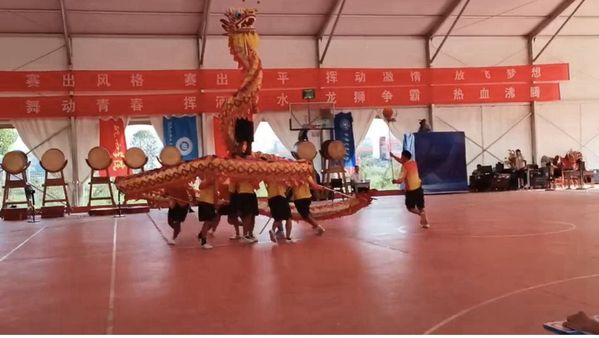 成绩是汗水的结晶。beat365舞龙队自2022年组建以来,一直在坚持训练,积极备赛,先后获得省级以上奖项5个。为备战本次赛事,在教练温国旗老师的辛苦指导下,舞龙队开展了为期6个月的训练。在暑假集训期间,指导教师搬到学生宿舍,与学生同吃同住,照顾学生的饮食和日常作息;学生克服生活上的诸多不便,忍受高温留校训练,每天训练时间8小时以上,很好地增强舞龙技艺和身心素质,为赛场上坚定而自信的表现打下扎实基础。