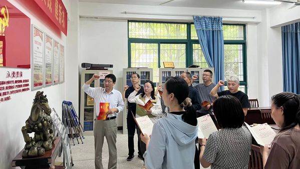 学习会前,按照市委组织部要求,公共基础部党总支为上半年入党的同志集体过“政治生日”,张林带领全体党员重温入党誓词,提醒每位党员“弘扬建党精神、牢记初心使命、勇于担当作为”。