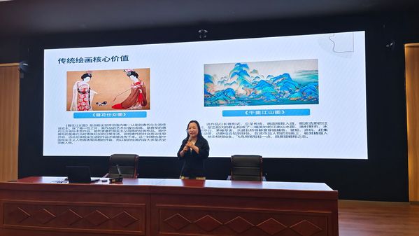 讲座中,储可可围绕传统绘画艺术鉴赏、深度学习推动AI绘画崛起、AI绘画的机遇与挑战、AI绘画与传统绘画的未来四个方面展开。从传统绘画历经史前艺术的自然崇拜到文艺复兴的人文觉醒,从以《蒙娜丽莎》的细腻笔触讲解到《千里江山图》的山水意境。她指出其核心价值不仅在于审美教育,更在于艺术家通过手工创作实现的创新突破。