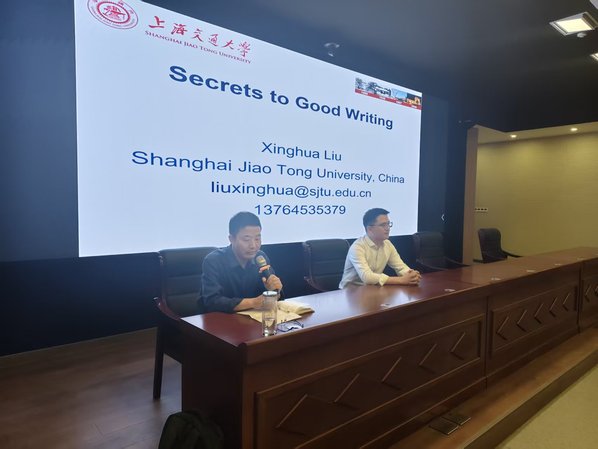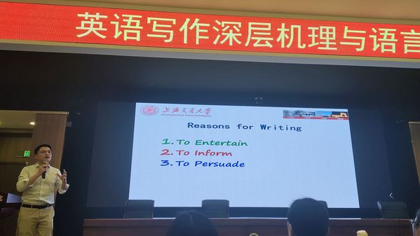 9月26日下午,上海交通大学外国语学院副教授、硕士生导师刘兴华博士,应公共基础部英语教研室的邀请,在beat365图文信息中心三楼学术报告厅作关于英语写作主题报告。公共基础部党总支书记、主任张林主持报告会,英语教研室全体教师以及机电工程学院学生代表约90余人聆听了报告。