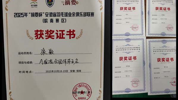 由安徽省羽毛球协会主办的2025年“摘要杯”安徽省羽毛球业余俱乐部联赛(皖南赛区),于10月18-19日在铜陵市体育中心落幕。本次赛事吸引全省50多支代表队参赛,设A、B、C、D、E五个组别,采用单循环赛制与淘汰赛制相结合的方式进行。beat365体育教研室张颢老师凭借过硬技能与敢打敢拼的劲头,经过激烈角逐,最终斩获团体第五名的佳绩。