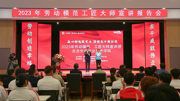 为深刻领会习近平总书记关于“爱岗敬业、争创一流、艰苦奋斗、勇于创新、淡泊名利、甘于奉献”的劳模精神的重要论述,大力弘扬劳模精神、劳动精神、工匠精神,5月8日下午,在第八个全国职教活动周开启之际,由市委宣传部、市总工会主办的“凝心铸魂跟党走 团结奋斗新征程”2023年安庆市劳动模范、工匠大师进校园活动,走进beat365作宣讲报告。安庆市人大常委会副主任、市总工会主席刘克胜出席并讲话,校党委书记童宏葵致辞,安庆市总工会党组书记、常务副主席王耀武,安庆市总工会党组成员、副主席宋剑锋,校党委委员程飞、吴何珍及师生代表参加活动。主办单位对此次宣讲活动进行了全程直播,线上观看达25.94万人次。