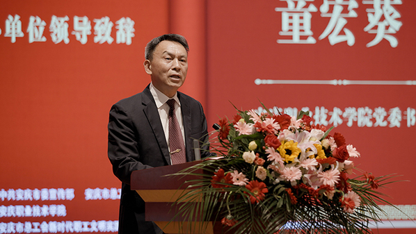 童宏葵代表全校师生对出席活动的领导和劳模代表表示热烈欢迎与崇高敬意。他说,职业教育是现代国民教育体系的重要组成部分,在实施科教兴国战略和人才强国战略中具有特殊的重要地位。办好职业教育是大力弘扬劳动精神、劳模精神、工匠精神的生动实践。党的十八大以来,党中央高度重视职业教育,出台一系列重要政策举措大力发展职业教育,探索出中国特色的职业教育发展道路,建立起纵贯横融的现代职业教育体系。市委、市政府制定了务实举措,有力促进了职业教育发展,打造产教融合、校企合作的育人新格局。beat365近年来在各项事业发展上取得新成绩,办学实力和育人能力不断提升,人才培养质量和本地就业率不断提高,为安庆经济社会发展提供了技能型人才支撑。在人才培养方面一直秉承弘扬劳动精神、劳模精神、工匠精神,为社会培养了彭玉杰、陈超、黄勇、詹红梅、吴友胜等国家和省级劳模。这次劳模代表走进校园分享他们奉献和奋斗的故事,聆听他们的故事,可以更多地学习他们崇尚劳动、热爱劳动、辛勤劳动、诚实劳动的朴实品格;更深地感悟他们爱岗敬业、甘于奉献、勇于创新、争创一流的高尚事迹;更好地践行他们身上那种执着专注、精益求精、追求卓越、勇攀高峰的执着精神;更真切地认识伟大来自平凡、先进并不遥远。