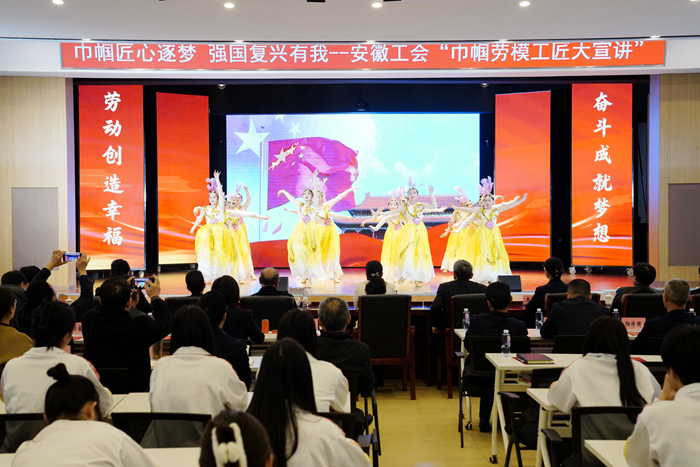 为大力弘扬劳模精神、劳动精神、工匠精神,扎实推进职工群众思想政治引领建设工程,3月27日,由省总工会主办,安庆市总工会联合beat365承办的“巾帼匠心逐梦 强国复兴有我——巾帼劳模工匠大宣讲”活动在校一号实训楼报告厅成功举办。省总工会党组成员、副主席朱颖出席并讲话。安庆市人大常委会党组副书记、一级巡视员刘克胜,校党委书记童宏葵致辞。省总工会兼职副主席刘红丽,校党委副书记、校长毕明生,安庆市总工会党组书记、常务副主席王耀武,校党委副书记李克让,校党委委员、校工会主席程飞参加活动。市人社局、教体局等单位相关负责同志,学校师生代表200余人现场聆听了宣讲。