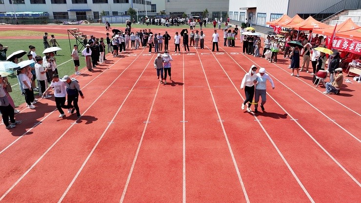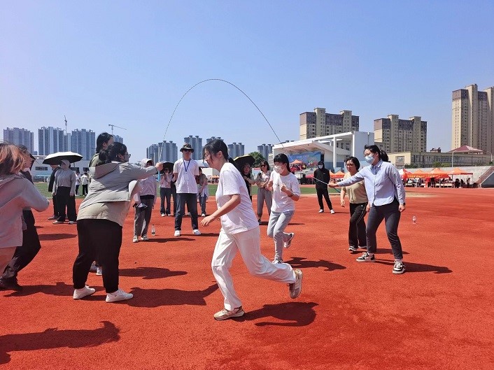 5 月 17 日上午,阳光明媚,beat365中国唯一官网体育场热闹非凡,一场别开生面的职工趣味运动会与学生田径运动会一并精彩上演。本次职工趣味运动会设置60米两人三足跑、3分钟6人8字跳绳两个项目。来自全校11个分工会近 170 名教职工积极报名参加,与学生同乐。