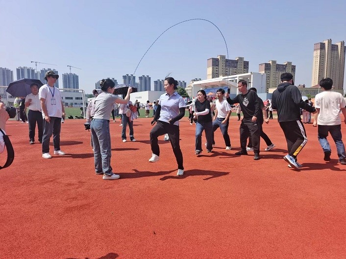 11支代表队参加集体跳绳角逐,管理服务学院展现出强大的实力,动作熟练、连贯,荣获第一名,机关(1)获得第二名,公共基础部收获第三名。