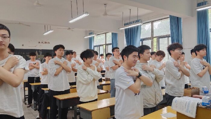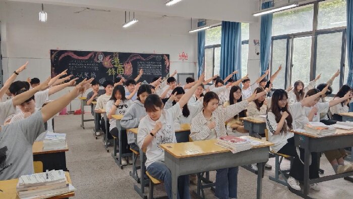 比赛过程中,各班教室化身为充满活力的表演场地。同学们以课桌为道具,巧妙地将舞蹈与桌面动作相结合,创造出了别具一格的视觉效果。从欢快活泼的流行音乐到激昂振奋的励志旋律,不同风格的曲目在各班教室中奏响,同学们跟随节奏舞动双手、转动身体,动作整齐划一,笑容灿烂自信。他们用灵动的指尖、跃动的身姿诠释着青春的朝气与活力,展现出了我院学子积极向上、团结协作的精神风貌。