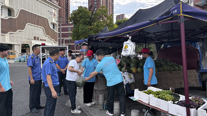 在安徽省博物馆,实践队化身“文化传播者”,开展志愿解说活动。队员们提前查阅资料、编写讲解词,为游客详细讲解楚大鼎、铸客大鼎等镇馆之宝背后的历史故事。走出博物馆,队员们又投身肥东县撮街,跟随城管队员开展“市容美化”行动。他们协助摊主整理货物、设计促销标语,帮助社区摊点提升销量;同时化身“文明劝导员”,引导游客规范停车、维护环境卫生。