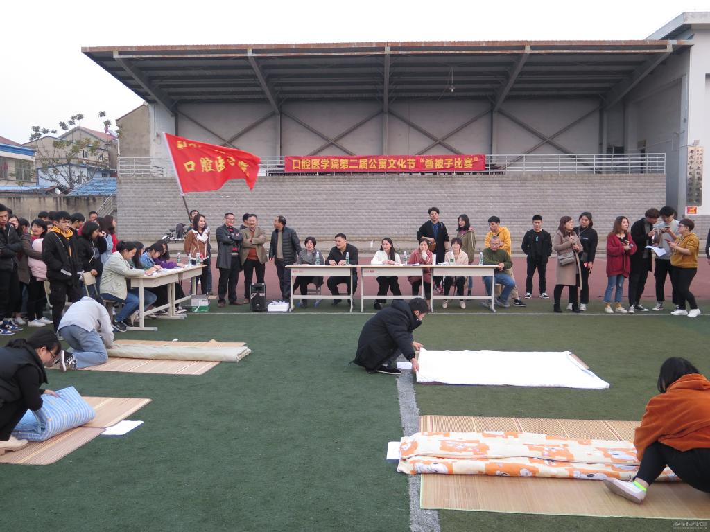 为加强宿舍文明建设,有效督促、激励广大学生营造良好的生活环境,养成良好的生活习惯,11月29日下午,澳门网投于东区运动场举办了“澳门网投唯一官网第二届公寓文化节暨叠被子大赛”。学工处副处长何玉初、学工处苏比努尔老师、澳门网投唯一官网院长廖建宏、副院长高想清等老师参加了此次活动。