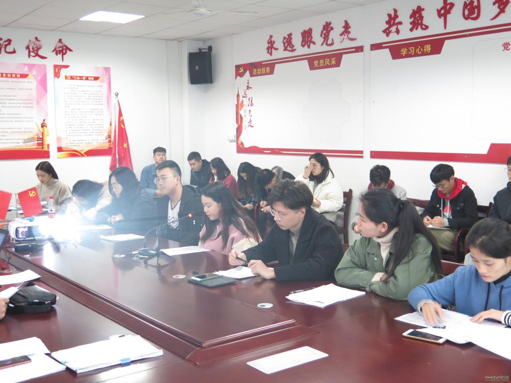 12月3日下午,澳门网投唯一官网2018年下半年学工党支部预备党员接收大会于立德楼409党员活动中心庄严举行,会议由学工党支部书记李周胜主持。澳门网投唯一官网党总支副书记、副院长高想清,学工办主任吴建桥、学工党支部宣传委员梅盛平、团总支书记周晋、以及党支部成员出席了本次会议。
