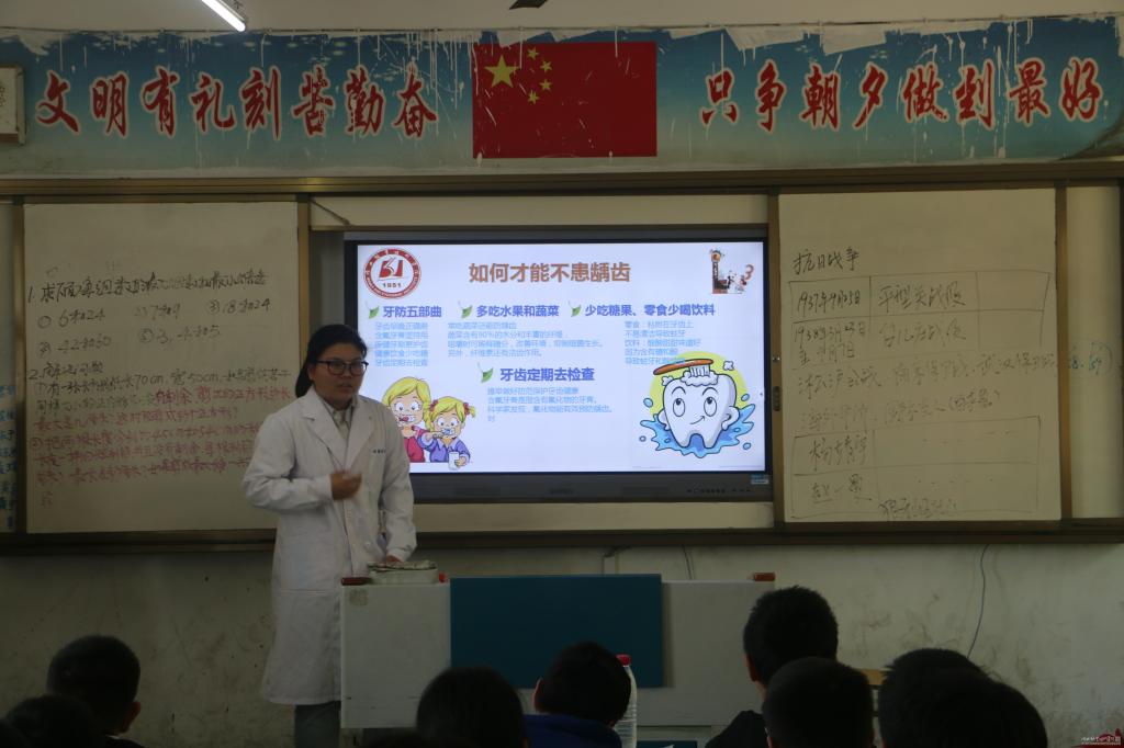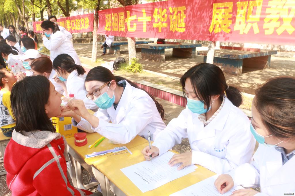 在2019年职业教育活动周来临之际,为更好地服务区域经济发展,普及口腔健康知识,传播口腔健康理念,增强口腔保健意识,5月8日下午,澳门网投唯一官网党总支副书记高想清带领党员骨干教师和入党积极分子组成的“爱心口腔”志愿服务队来到孝南区三汊埠小学,为当地群众和师生开展了口腔健康宣教和义诊。