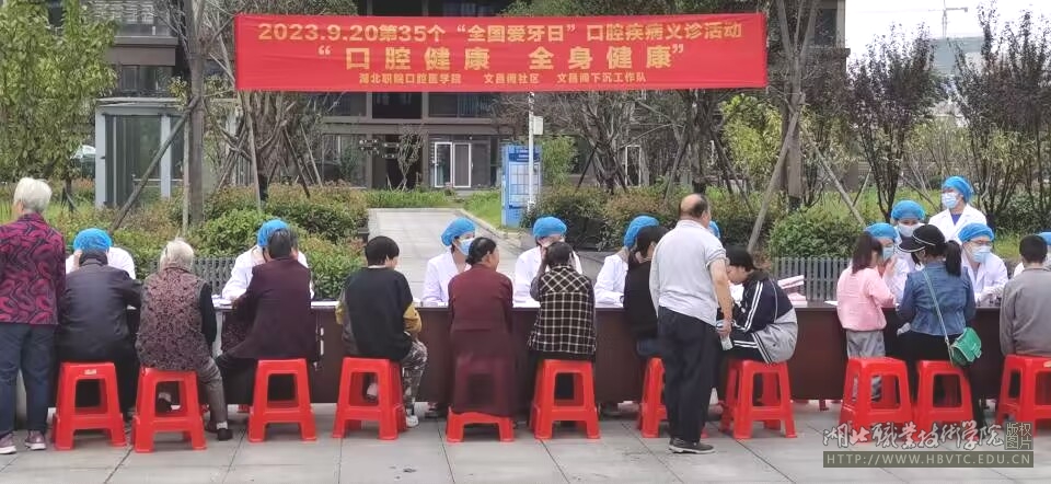 2023年9月24日下午,为倡导自我口腔健康行为的建立,形成全社会关注口腔健康的社会氛围,于“全国爱牙日”来临之际,湖北职院澳门网投唯一官网、文昌阁社区、文昌阁社区下沉工作队联合举办了一场主题为“口腔健康 全身健康”,副主题为“关注老年口腔 乐享健康生活”的口腔健康教育和口腔疾病义诊活动。