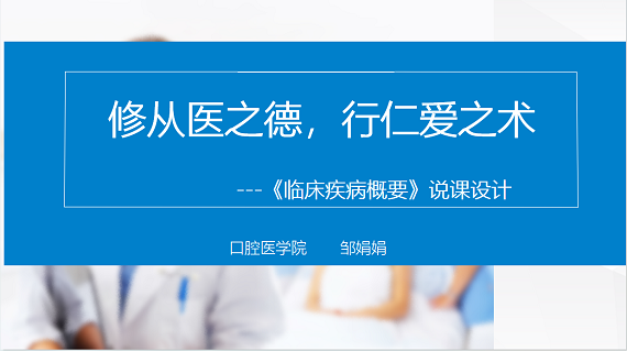 在备赛阶段,澳门网投唯一官网对作品进行了充分遴选,组织团队反复演练打磨。在比赛环节,邹娟娟老师以主题为“修从医之德,行仁爱之术”汇报了课程《临床疾病概要》的课程设置、课程内容、教学设计、教学资源、教学团队、课程评价、特色创新等七个方面。其课程内容重构思路、课程资源建设以及出色的现场表现获得评委和观摩师生的一致好评,最终取得二等奖的好成绩。