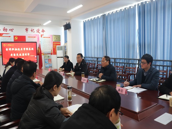 丁海峰书记介绍了黄冈职院医药学院办学情况,丁书记对我校医类专业的办学成绩给予了高度评价,特别是对口腔医学专业的高就业率印象深刻,认为我校的办学理念和实践经验具有很强的借鉴意义,为黄冈职院医药学院提供了有益的参考。