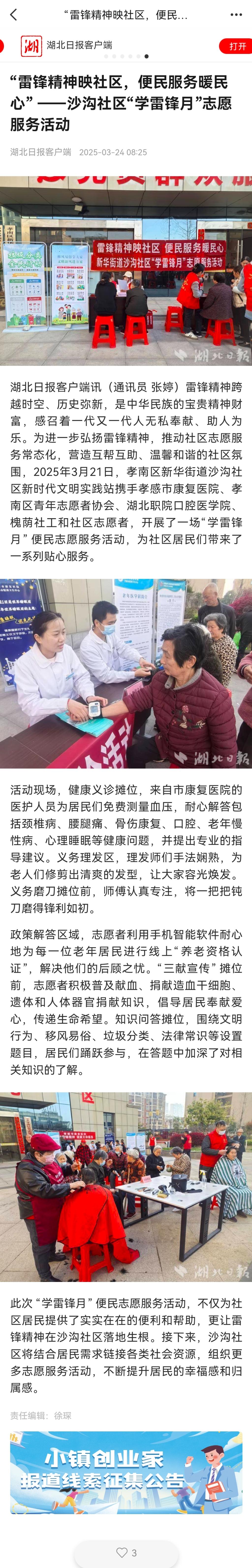 【湖北日报】“雷锋精神映社区,便民服 [2025/03/27]