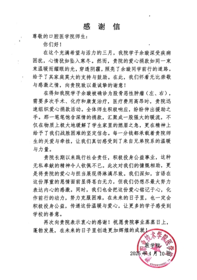图4 医学院感谢信