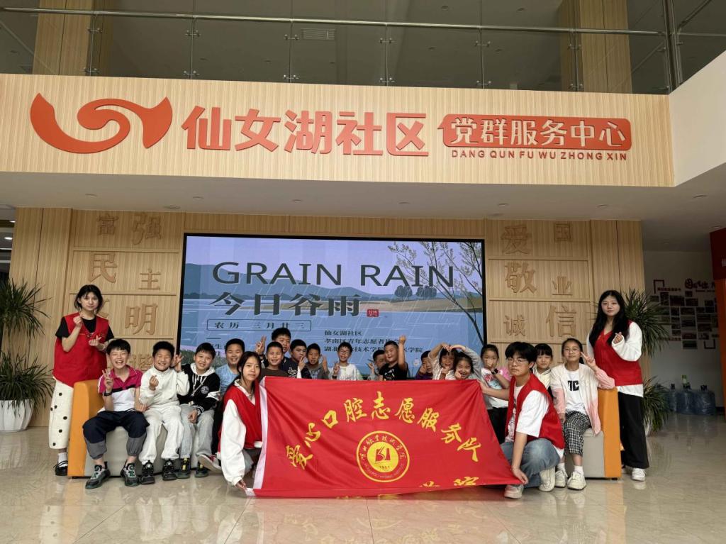 4月19日上午,澳门网投唯一官网爱心口腔志愿服务队协同孝南开发区仙女湖社区、孝南区青年志愿者协会,共同开展“周末学堂”谷雨节气主题科普活动,为仙女湖社区青少年带来一场融合传统文化与健康知识的生动课堂。