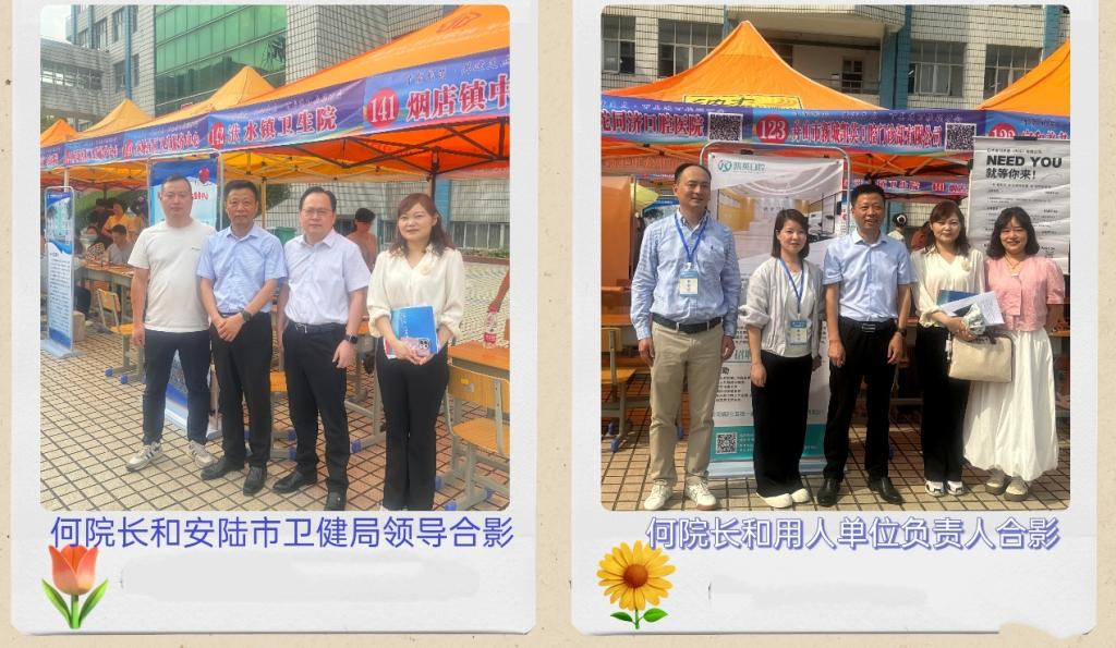 5月14日招聘会当天,澳门网投唯一官网组织22级、23级学生有序参会,现场气氛热烈。澳门网投唯一官网院长何伟带领班子成员、辅导员全程参与招聘会,与校领导以及各县市卫健局、广西杨强医院、汉川市牙康安口腔诊所、舟山市普陀同济口腔医院、孝感中山口腔等单位负责人进行深入交流。何院长感谢用人单位对学院人才培养的认可,并就订单式培养、实习就业联动等合作方向达成初步意向。