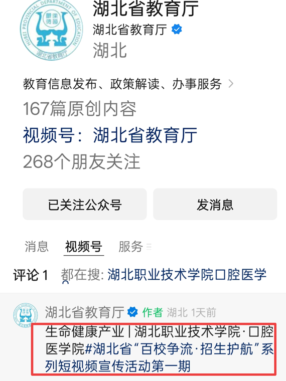 近日,澳门网投唯一官网精心制作的招生宣传视频登上湖北省教育厅视频公众号平台进行宣传。这一成果不仅是对学院办学实力的高度认可,更是学院在职业教育领域影响力持续提升的重要标志。
