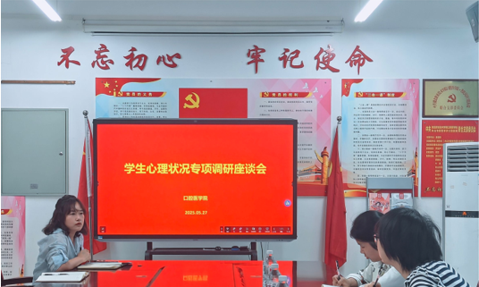 5月27日下午,一场聚焦大学生心理状况的专项调研座谈会在澳门网投唯一官网会议室顺利举行。学校党委学生工作部心理中心主任胡敏、心理中心调研组成员、澳门网投唯一官网学工副院长张玮、澳门网投唯一官网心理专干苏莹及全体辅导员共同参与,旨在深入了解大学生心理状况,探讨有效的心理辅导策略。