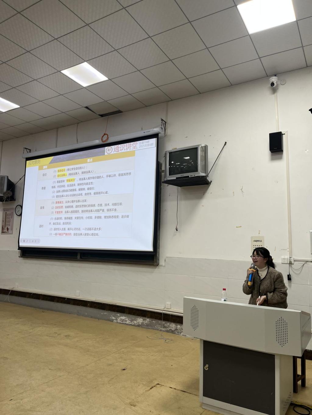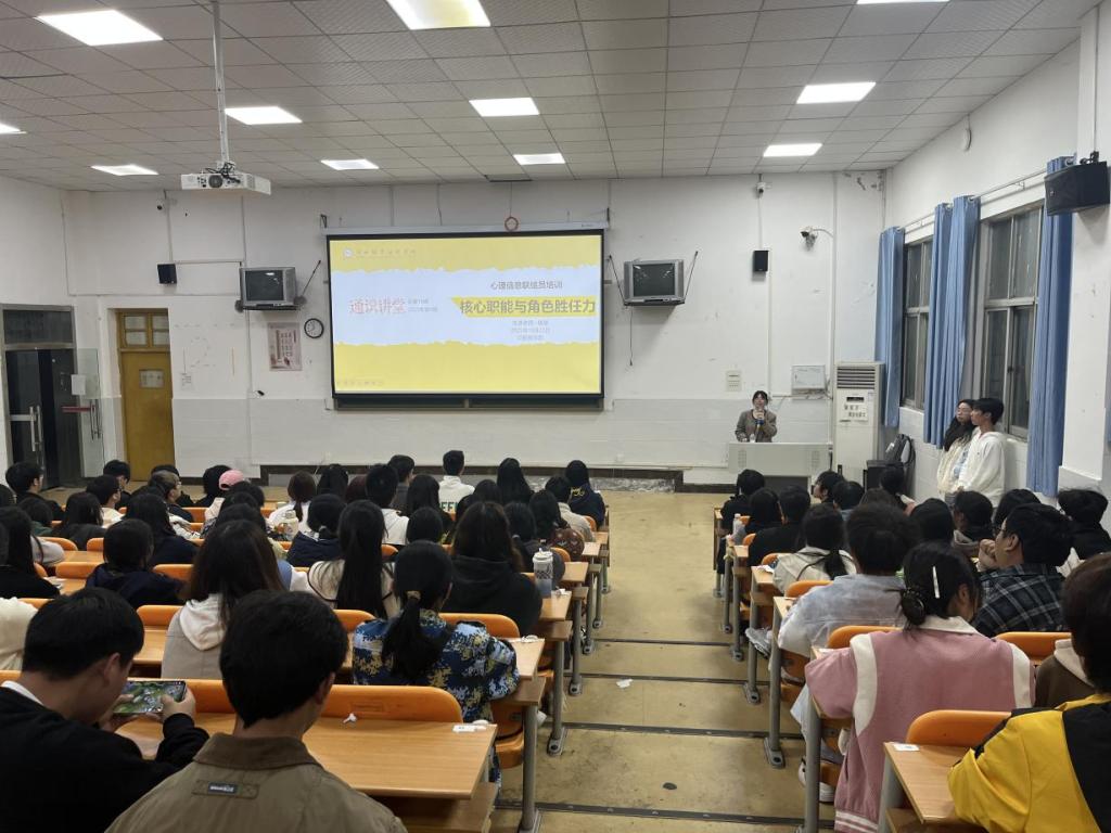 为进一步织密校园心理健康防护网络,全面提升心理信息联络员的专业素养与履职能力,2025年10月22日,澳门网投唯一官网心理部在东区阶梯教室101组织开展以“核心职能与角色胜任力”为主题的心理信息联络员培训。本次培训由学院心理专干杨玺老师主讲,全院各班级心理委员及寝室长共计201人参与,围绕心理信息联络员的初心使命、角色职责与实务技能展开深入学习,为校园心理健康工作注入新活力。