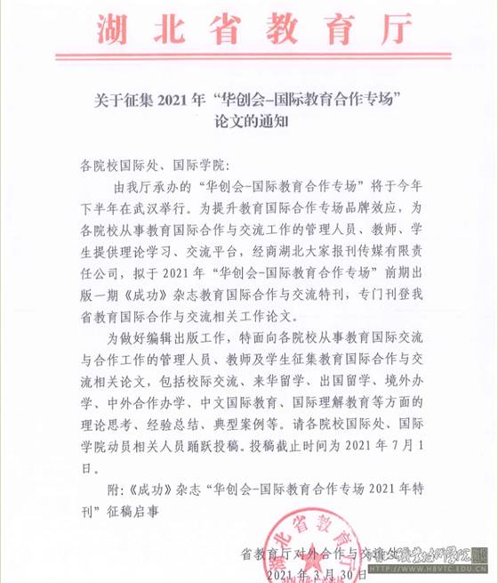 关于征集2021年“华创会—国际教育合作专场”论文的通知