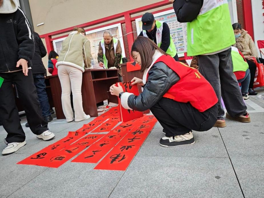 除了口腔健康服务,集市还设置了非遗文化、文明法治宣传等特色专区,营造出浓厚的新春氛围。非遗文化专区内,非遗雕花剪纸、写春联、投壶套圈等民俗活动吸引了不少居民参与,“爱心口腔”的志愿者们也主动搭把手,帮忙整理春联、引导现场秩序,让文化体验更顺畅;文明法治宣传专区里,社区网格员、民警向居民普及文明城市知识与防诈骗常识,志愿者们见状也主动协助分发宣传资料,助力提升居民安全意识与文明素养。