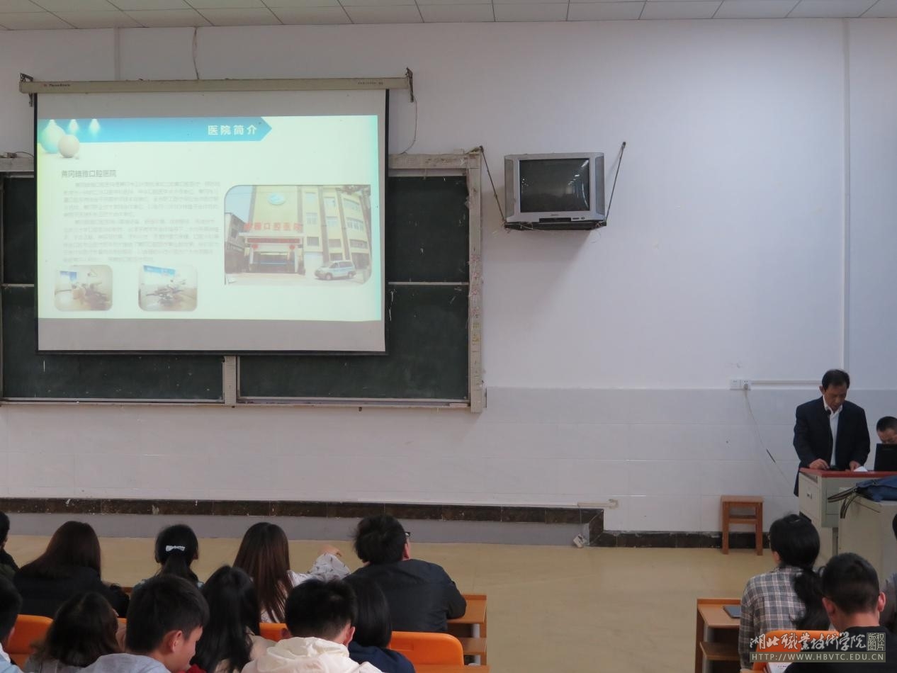 会议开始,两位医院负责人依次做了精彩宣讲,介绍了医院环境,团队力量、社会影响力和实习生学术培养方案、员工福利等。据悉,舟山同济医院从2011年开始与我校合作,每年招生多名实习生,至今实习生总数高达200多名,2018年被评为我校首家实习生示范基地。黄冈皓雅口腔医院自2014年成立至今,用创新型管理理念,积分制管理模式,快速发展为二级口腔医院。