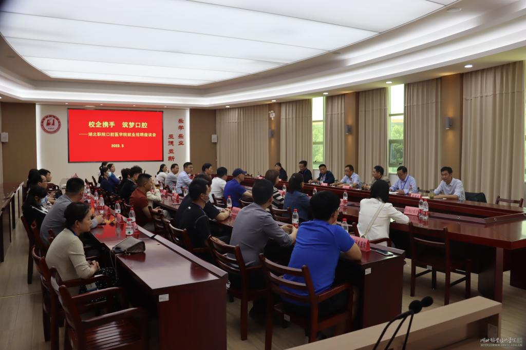 澳门网投唯一官网一年一度的医护类招聘会于5月9日在立德广场举行,以此为契机,澳门网投召集口腔类用人单位汇聚一堂,上午11:00在文德楼201举办“校企携手 筑梦口腔”就业招聘座谈会。与会人员有湖北职院党委委员、副校长梅重,招就处处长丁争柱、副处长赵联福、艾欢,澳门网投唯一官网院长何伟、副院长周建平以及来自湖北、浙江、北京和河南等39家口腔医疗机构代表,会议由澳门网投唯一官网党总支书记孙国运主持。
