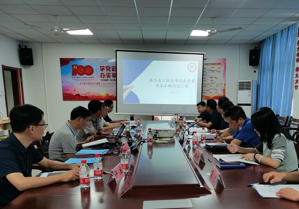 2021年9月3日下午,澳门网投唯一官网在德艺楼举行湖北省医学职业教育口腔医学专业技能竞赛设备采购论证会,孝感市中心医院口腔医学中心主任黄卫东、医学院院长许三林、附属惠济医院院长胡加鹏、医学基础部部长孙国运、教务处副处长王俊平、口腔临床教研室主任肖严、澳门网投唯一官网班子成员参加了此次论证会。会议由澳门网投唯一官网院长何伟主持。