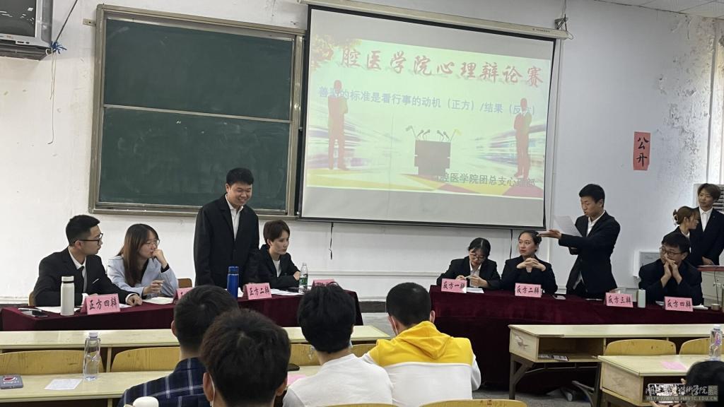 4月29日,澳门网投唯一官网团总支心理部举办的以“善恶的标准是看行事的动机/结果”为主题的辩论赛在东区阶梯教室201教室如期举行。参加本次辩论赛的有澳门网投唯一官网党总支副书记周建平,主持人孙磊、尹璐,正辩和反辩各四人,以及上百名学生前来观赛。