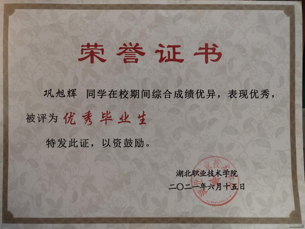 后来,临近实习,老师们时常叮嘱,口腔专业的学生要多锻炼动手能力。临近毕业,在老师们的关心指导和鼓励下,我有幸被评为湖北职院优秀毕业生。但我深知身边有太多优秀的前辈和同学,难以一一描摹和细数。学医之路,道阻且长。新的征程当只争朝夕,不负韶华。