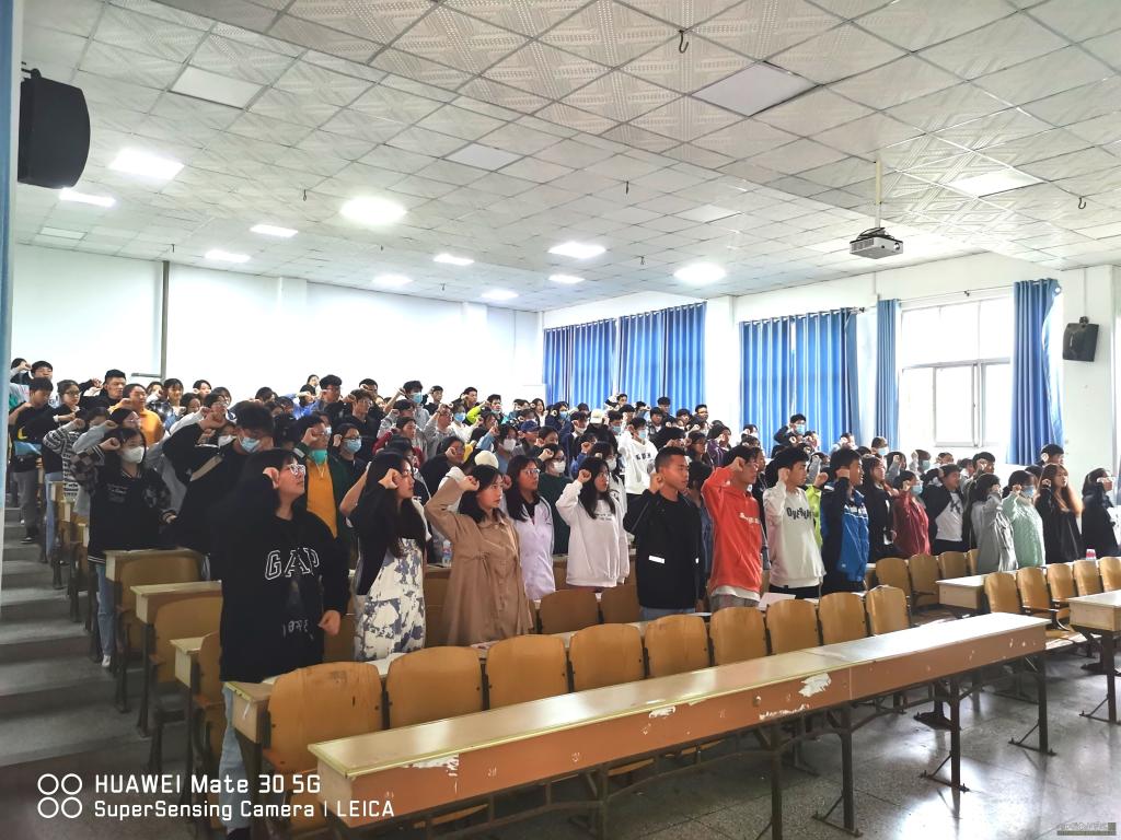 会上,在常老师声情并茂、图文并茂的讲述下,这场生动地党课使学生们再次学习了中国共产党的奋斗历程,不忘初心,砥砺前行;党课在常老师带领大家“请党放心,强国有我”的宣誓中圆满结束。